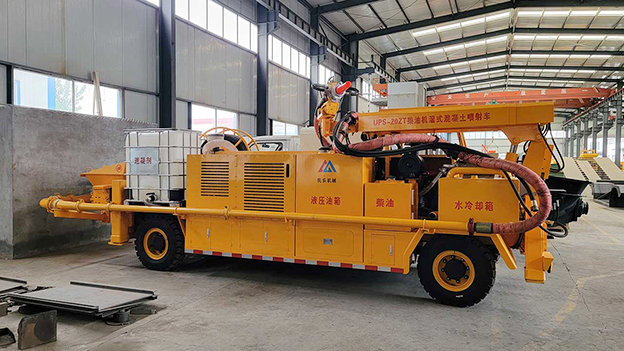2.車載式濕噴臺(tái)車泵送系統(tǒng)能耗少,工作效率高,故障率低,易損件少,維護(hù)使用成本低,系統(tǒng)可靠性高,輸送量穩(wěn)定。噴射系統(tǒng)采用雙噴頭噴漿作業(yè),提高了工作效率。
